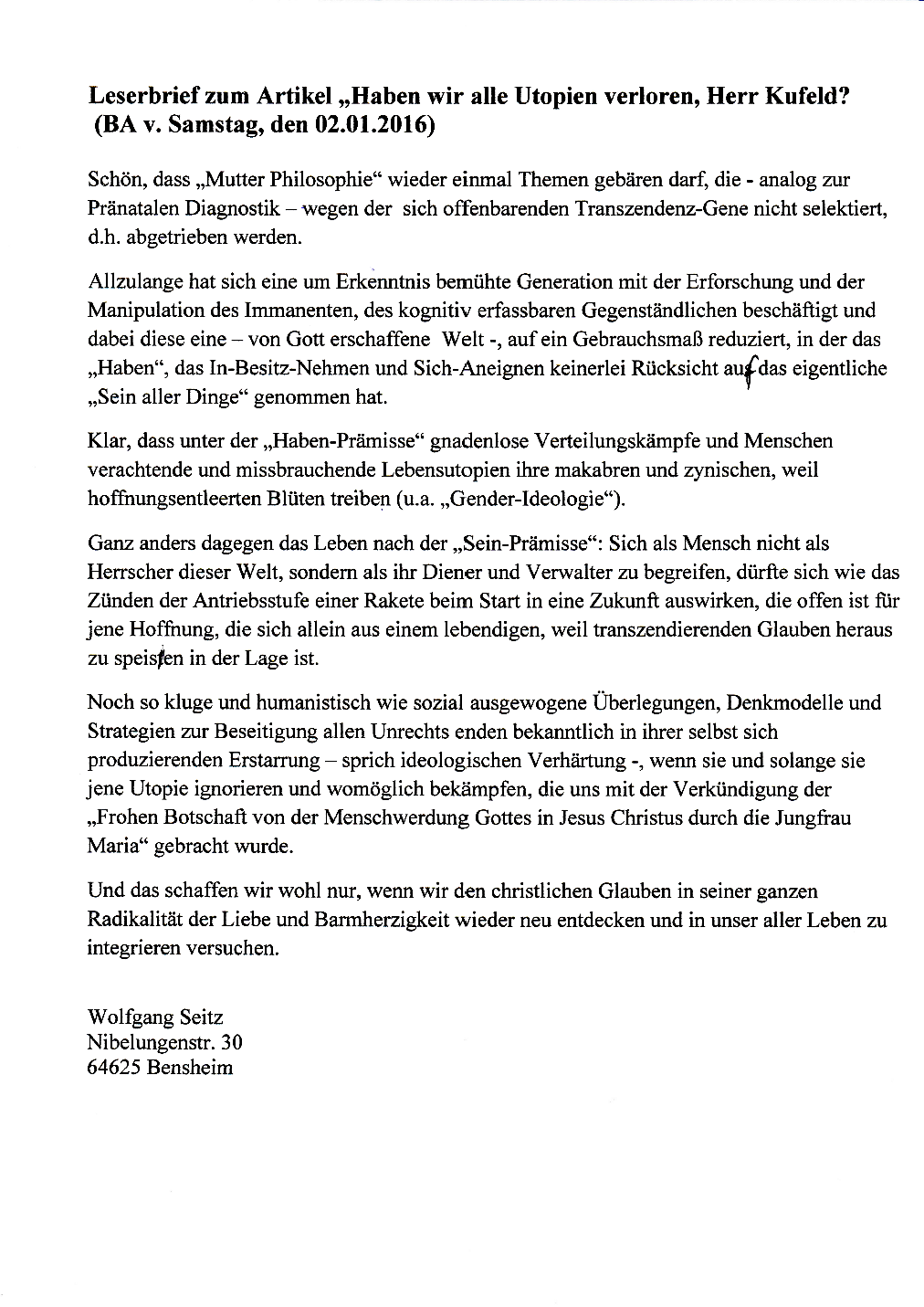 Leserbriefe (LB) Jahrgänge 2011-2016